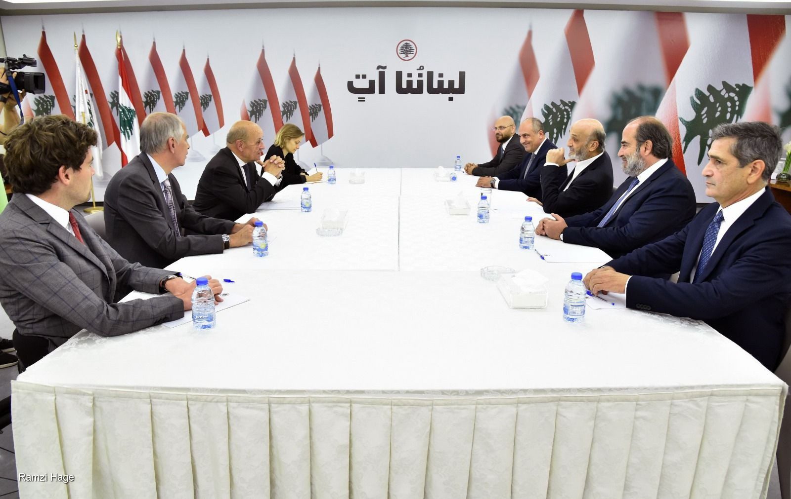 التقى رئيس حزب القوات اللبنانية سمير جعجع، في معراب، الموفد الفرنسي جان ايف لودريان الذي رافقه السفير الفرنسي في لبنان H...