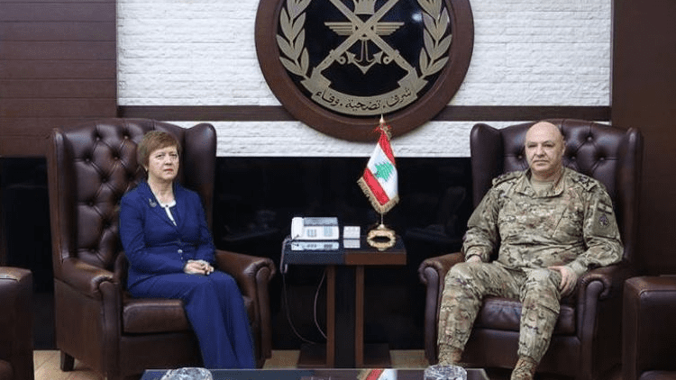 استقبل قائد الجيش العماد جوزاف عون في مكتبه في اليرزة المنسقة الخاصة للأمين العام للأمم المتحدة في لبنان Joanna Wronecka...