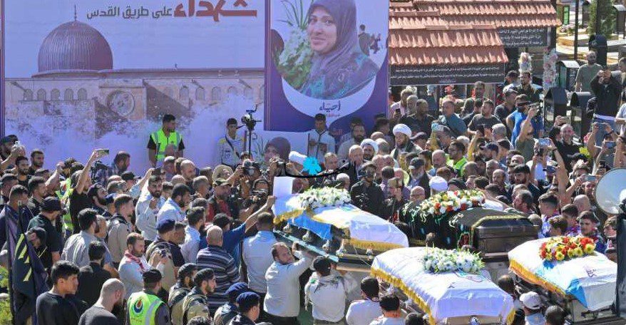 شيعت بلدة بليدا الجنوبية في وداع مؤلم ومؤثر الشقيقات الثلاث: ريماس وليان وتالين شور مع جدتهن الحاجة سميرة أيوب اللواتي س...
