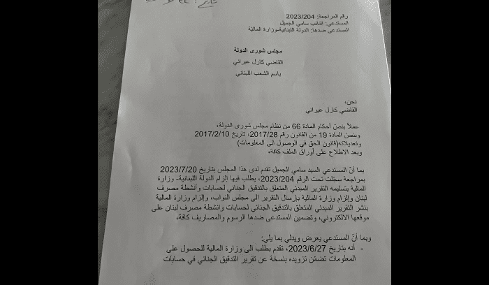 نشر رئيس حزب الكتائب النائب سامي الجميّل عبر حسابه على \"تويتر \"صورة عن القرار الذي صدر عن قاضي العجلة الإداري كارل عير...