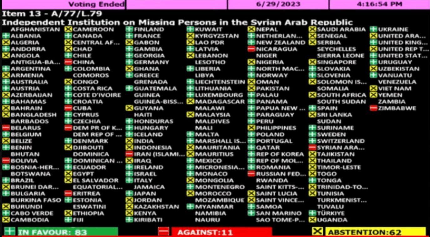 أجمعت الجمعية العامة التابعة للأمم المتحدة، في تصويت الخميس، على إنشاء مؤسسة هي الأولى من نوعها تعمل على كشف مصير ما يقد...