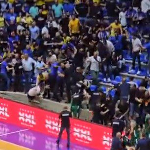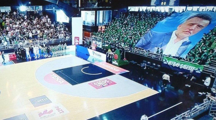 رفع جمهور نادي الحكمة لكرة السلة صورة عملاقة للشهيد باسكال سليمان داخل ملعب غزيرقبل بداية مباراته مع نادي الانترانيك ، ...