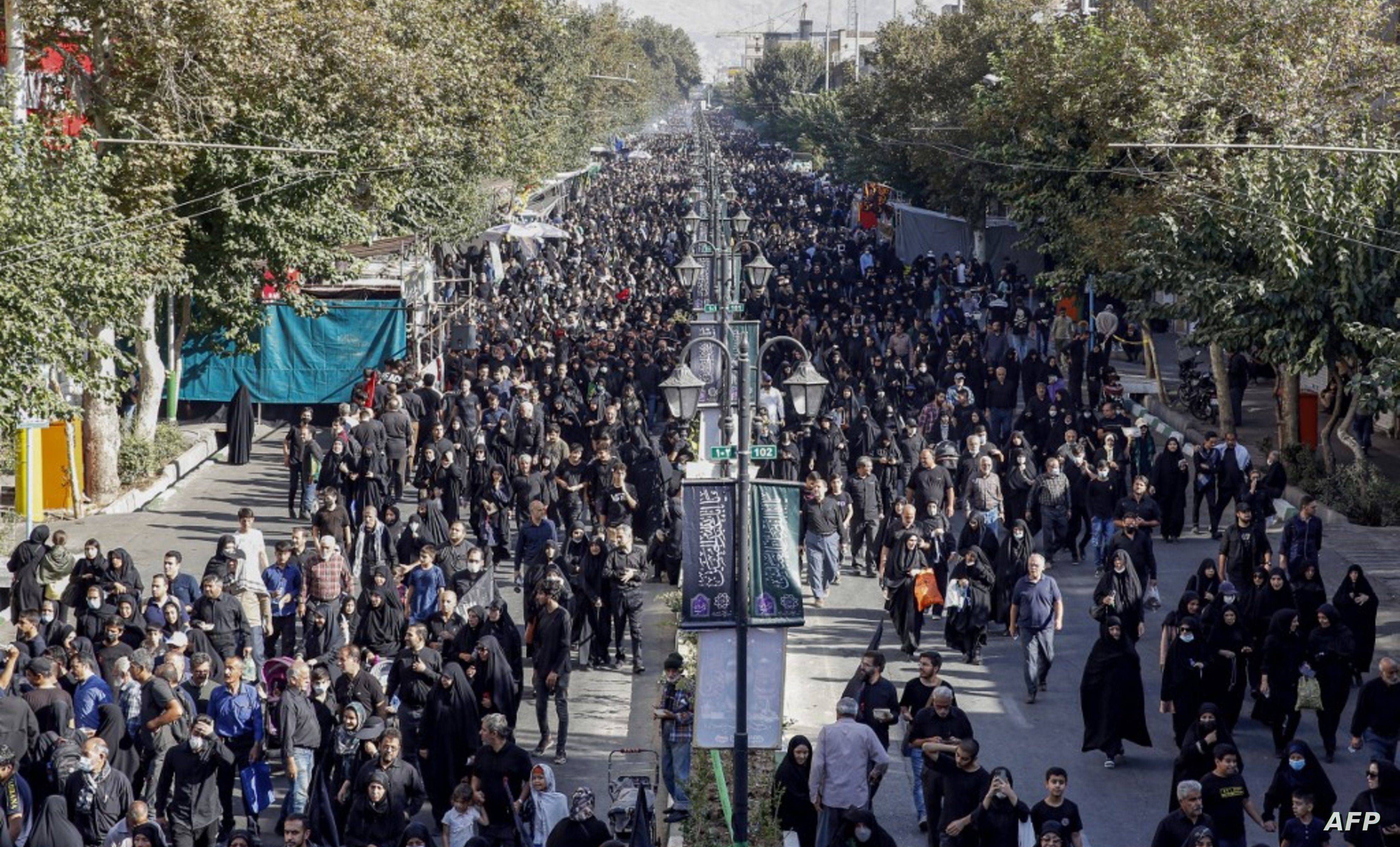 على وقع ترنيمات يقول بعضها: \"من أجل مدينة في حالة خراب، من أجلنا جميعا نحن الرهائن، من أجل الأمهات الحزينات، من أجل دمو...