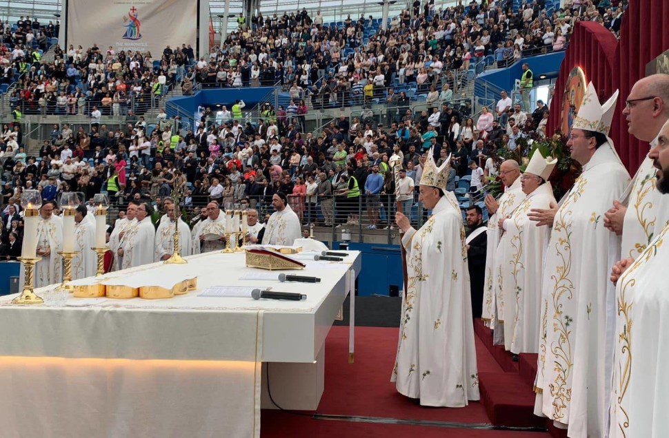 ترأس البطريرك الماروني الكاردينال مار بشارة بطرس الراعي القداس الاحتفالي لمناسبة اليوبيل الذهبي للابرشية المارونية في اس...